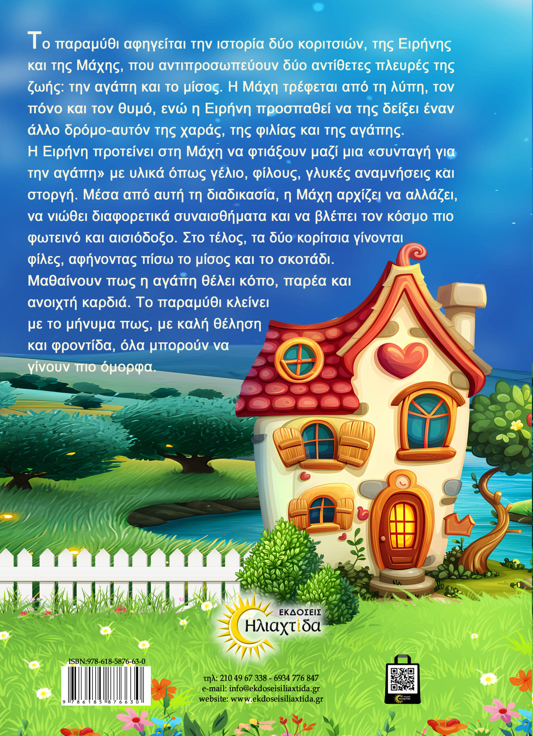 Το παραμύθι αφηγείται την ιστορία δύο κοριτσιών, της Ειρήνης και της Μάχης, που αντιπροσωπεύουν δύο αντίθετες πλευρές της ζωής: την αγάπη και το μίσος. Η Μάχη τρέφεται από τη λύπη, τον πόνο και τον θυμό, ενώ η Ειρήνη προσπαθεί να της δείξει έναν άλλο δρόμο – αυτόν της χαράς, της φιλίας και της αγάπης…